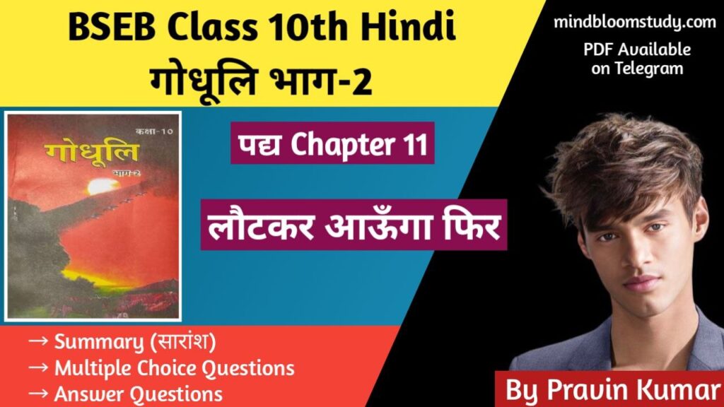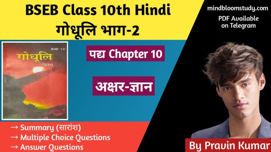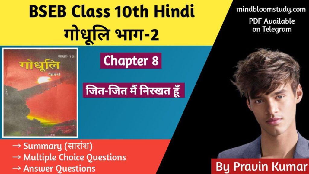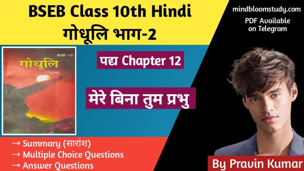 Bihar Board Class 10th Hindi : प्रिय विद्यार्थियों, “Mindbloom Study” (#1 Online Study Portal For Bihar Board Exams) आपके लिए लाया है Class 10th हिंदी अध्याय 12 “मेरे बिना तुम प्रभु — रेनर मारिया रिल्के” का सारांश, Objectives And Subjective Answer Questions वस्तुनिष्ठ प्रश्न (Multiple Choice Questions) 1. “मेरे बिना तुम प्रभु” पाठ की कौन-सी […]
