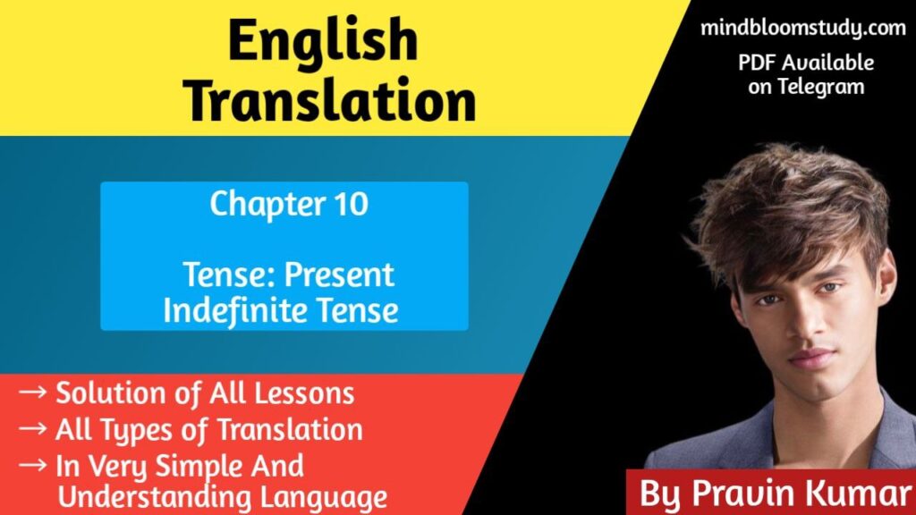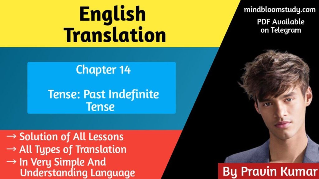 English Translation : प्रिय विद्यार्थियों, “Mindbloom Study” (#1 Online Study Portal For Bihar Board Exams) ने आपके लिए लाया है English Translation : Tense : Past Indefinite Tense Exercise 104 1. मैं गया। — I went.2. तुम रोए। — You wept.3. राम ने पढ़ा। — Ram read.4. सीता ने खेला। — Sita played.5. मैंने खेला […]