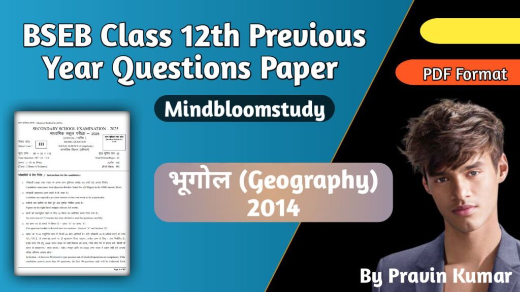 Bihar Board Class 12th Geography 2014 Question Answer : प्रिय विद्यार्थीयों, “Mindbloom Study” (#1 Online Study Portal For Bihar Board